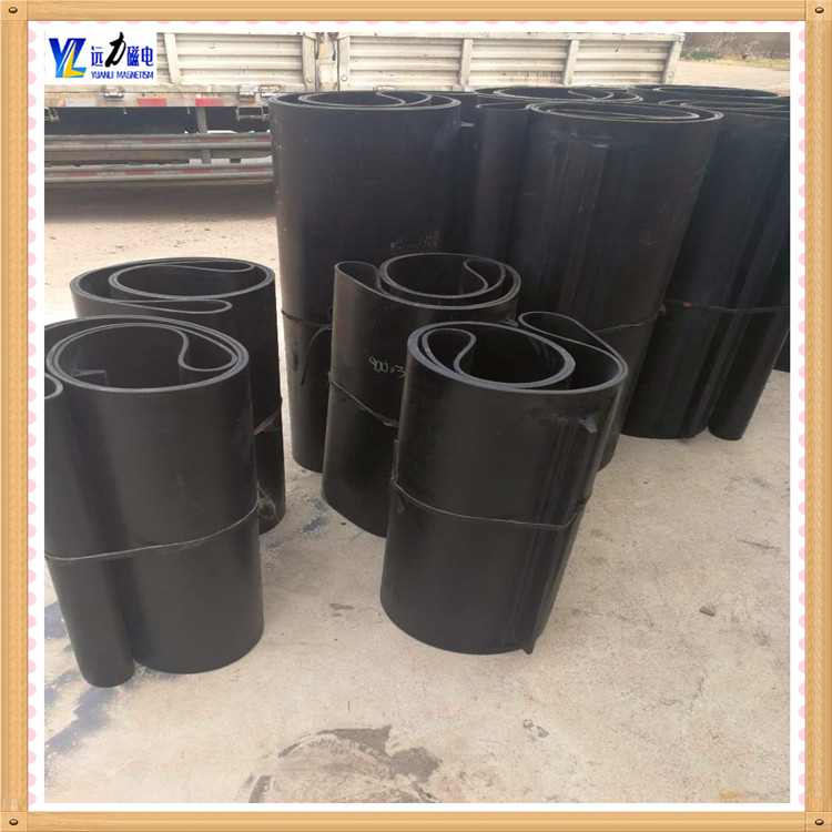 卸鐵皮帶除鐵器-環(huán)形輸送帶按帶體拉伸強(qiáng)度可分為M、L、H等型號(hào),其相應(yīng)拉伸強(qiáng)度如下表:   其中M型,其帶芯系用優(yōu)質(zhì)維棉交織帆布,一般2-6層,膠厚度約7.5mm-20mm; L型系用NN-200型尼帆布(或聚酯帆布)作強(qiáng)力層,一般2-6層,膠厚度7.500mm-20mm。用于各種自卸式除鐵器配件用。    H型系用NN-300型尼龍帆布(或聚酯帆布)作強(qiáng)力層,一般2-4層,膠帶總厚度7.500mm-20mm。    膠帶最大寬度為3100mm,按照作用性能,可提供普通型、耐熱型、耐寒型(不低于-4℃)耐酸堿型、導(dǎo)靜電型、耐高溫型(不高于150℃)及衛(wèi)生型等。    卸鐵皮帶除鐵器其它特殊性能要求,可協(xié)商試制